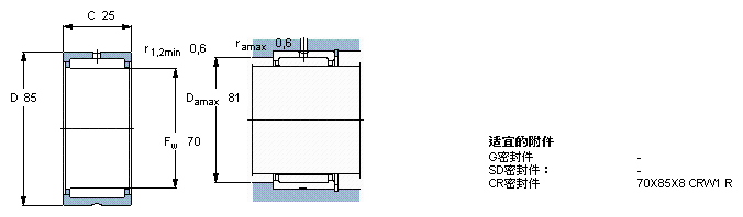 SKF NK70/25軸承圖紙及尺寸參數(shù)