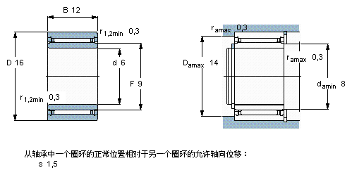 SKF NKI6/12TN軸承圖紙及尺寸參數(shù)